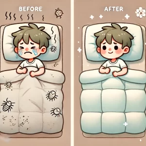 長期間しまわれていた寝具は、湿気・皮脂・ホコリの蓄積により、清潔さを失っていることが多いです。
